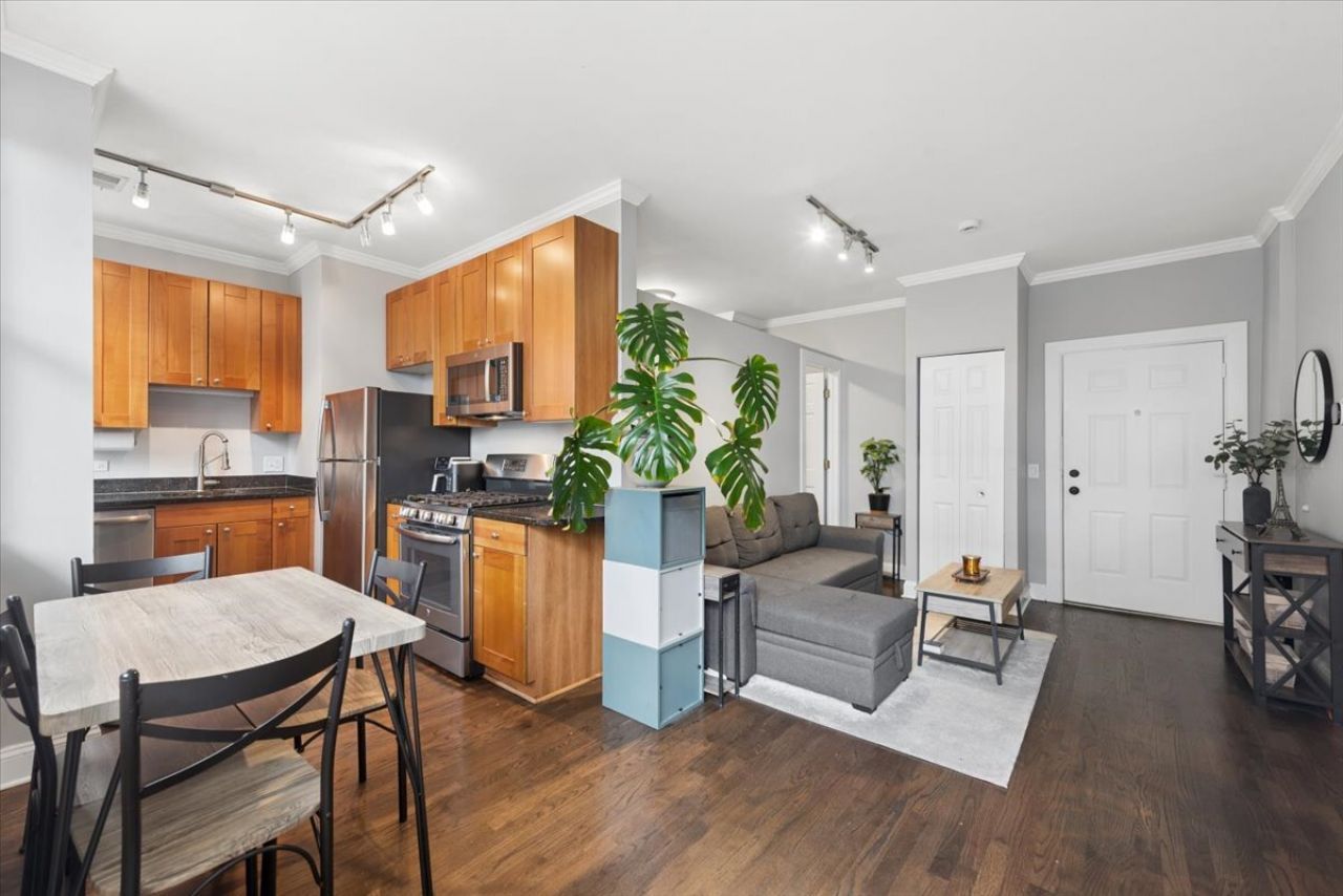 Inviting one-bedroom, north-facing condo in the heart of Buena Park. Expansive windows fill the home with natural light, creating a bright and airy atmosphere throughout the home. The spacious open living room and kitchen overlook an exceptionally large private backyard patio (15'x 32'). An ideal extension of your living space and perfect for entertaining on warm evenings, offering the feel of an additional room for much of the year. The kitchen features stainless steel appliances, while the recently renovated full bathroom adds a modern touch. Hardwood floors run throughout the unit. A generously sized walk-in closet provides ample storage. Convenience is key with laundry located just across the hall on the same floor, along with additional storage in the building. Residents also enjoy access to an exercise room and a roof sundeck, making this home a perfect blend of comfort, style, and amenities. Ideally located near Wrigley Field, this home is perfect for baseball fans. Just minutes to the vibrant Southport Corridor, Wrigleyville and Andersonville for boutique shopping, fine dining, and nightlife. Easy walk to the lake front and all it has to offer! Convenient close transportation with nearby Sheridan Red Line makes commuting a breeze.